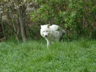 Quelques autres femelles de la meute ainsi que Inu, notre petit mâle 2013, participent également aux charges. Fort heureusement les coups de dents sont rares. Nous n’avons pas encore eu besoin de faire de soins dans cet enclos. Contrairement à la meute des sibériens, qui, du fait d’un changement dans la hiérarchie des mâles, et d’une rivalité très prononcée entre certaines femelles, se bagarrent énormément cette année. Nous comptons déjà 3 blessées.