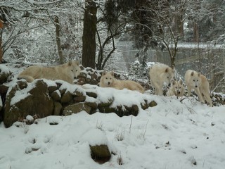 Les choses se sont calmĂ©es quelques temps mais vers la fin du mois de Janvier, les disputes ont repris. La situation est devenue plus compliquĂ©e car toutes les louves adultes sont rentrĂ©es en compĂ©tition les unes contre les autres. Durant pratiquement tout le mois de FĂ©vrier, les disputes furent permanentes. Cela nous a demandĂ© une surveillance accrue; nous avons du ĂȘtre encore plus vigilants face Ă ces bagarres importantes. Toutes prĂ©sentaient des morsures sur la gueule, le cou, les pattes ⊠Aucune ne cherchait Ă se soumettreâŠ