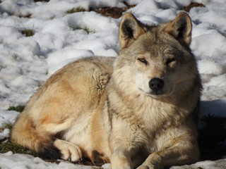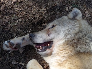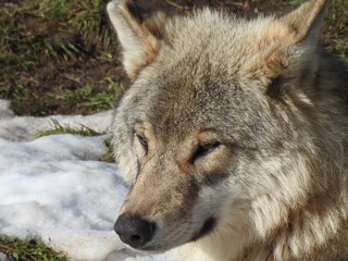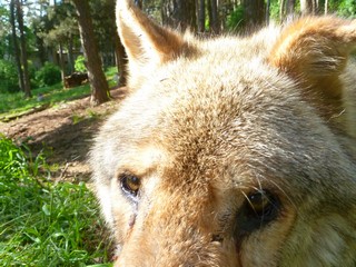 En portrait , Inu notre dominant, de plus en plus téméraire et pourtant il y a encore 1 an le plus craintif de la meute. Désormais durant nos différentes interventions dans l’enclos, il s’approche à une quinzaine de mètres de nous.
