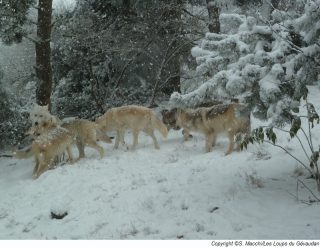 La meute, pour le moment, semble de nouveau bien soudée. Actuellement, les 5 loups passent toutes leurs journées ensemble. Nous verrons l’évolution des rapports entre les différents membres dans les semaines qui suivent et au moment des naissances.
